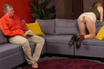 Ella is bored waiting in for a package to arrive. She asks Justin to entertain her but he refuses as he is reading. She pretends to look for something down the back of the sofa, letting her miniskirt ride up and Justin is soon perving at her perfect ass. When she turns round, he has a tent in his trousers...